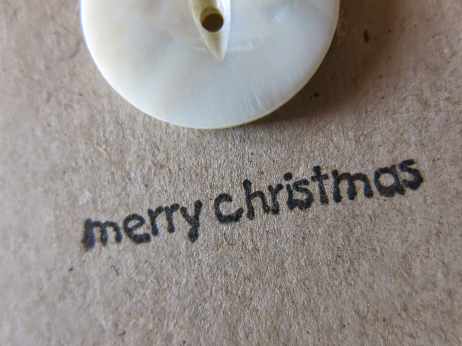I had soooo much fun making these dear little snowmen cards. Wish I could take credit for the idea, but I saw it on Pinterest (where else!). I only had a few white buttons in my collection that had two holes vs. four, so I sifted through the button box at my local thrift shop for the rest (enjoyed that part too!).